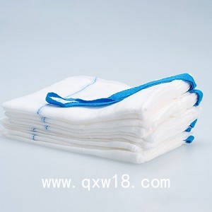 Ⅱ型:由醫(yī)用脫脂紗布或夾有X射線可探測組件的醫(yī)用脫脂紗布折成長方形或方形,無切邊外露,回周縫合,角部可縫制一根墊帶。