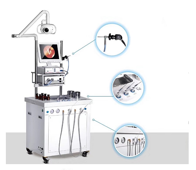耳鼻喉綜合治療臺集鼻內窺鏡、耳內窺鏡、耳顯微鏡、顯像系統、負壓正壓系統等于一體,用于耳鼻咽喉疾病的診斷與治療。