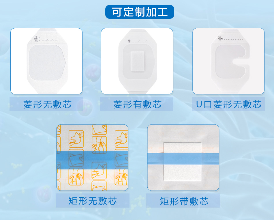 帶敷芯型用于非慢性創(chuàng)面 如淺表性創(chuàng)面、手術(shù)后縫合創(chuàng)面、機(jī)械創(chuàng)傷、小創(chuàng)口、擦傷、切割傷創(chuàng)面、穿刺器械的穿刺部位、I度或淺II度的燒燙傷創(chuàng)面、嬰兒肚臍口創(chuàng)口、激光/光子/果酸換膚/微整形術(shù)后創(chuàng)面)的護(hù)理,為創(chuàng)面愈合提供微環(huán)境。無敷芯型用于對(duì)穿刺器械(如導(dǎo)管)的穿刺部位的護(hù)理并固定穿刺器械。