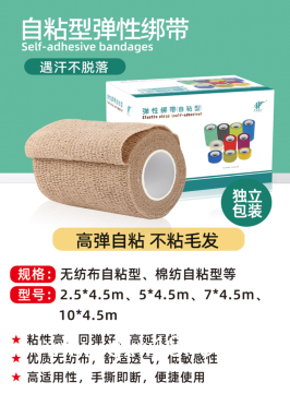 規(guī)格:無紡布自粘型、棉紡自粘型等型號2.5cm*450cm、5cm*450cm、7.5cm*450cm、
