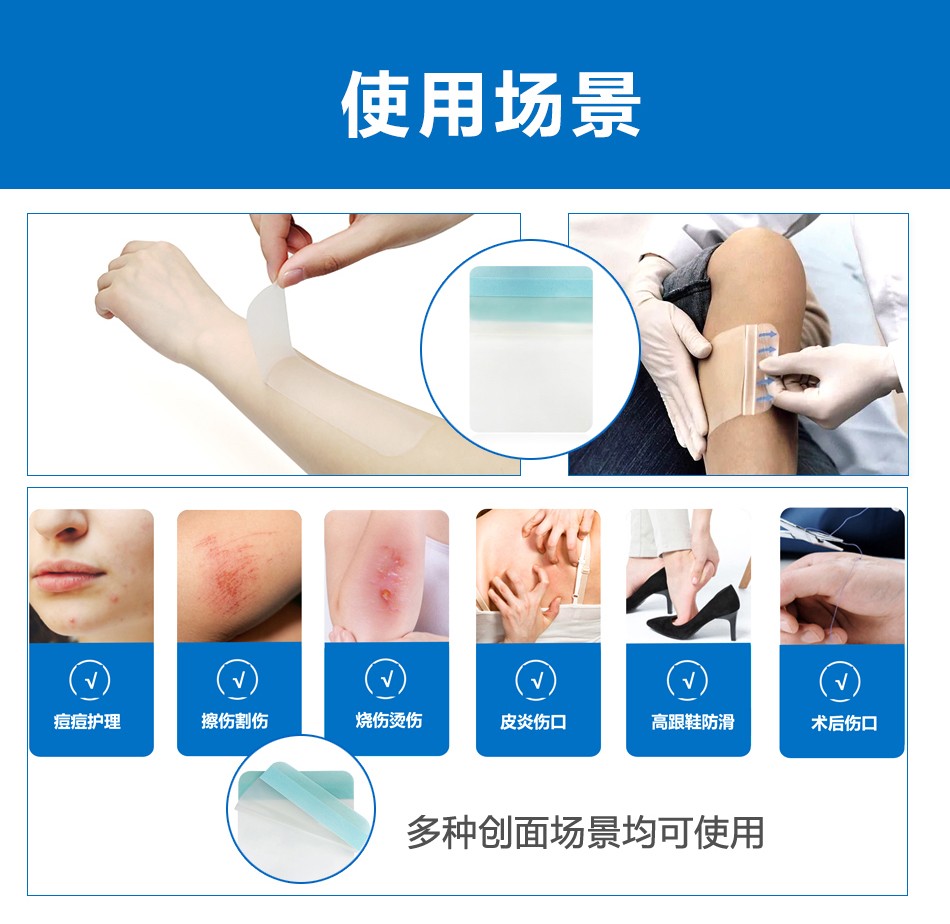 水膠體敷料由聚氨酯薄膜、水膠體層和隔離紙組成,水膠體層是由羧甲基纖維素與合成橡膠粘性物混合加工而成,隔離紙為離型紙。所含成份不可被人體吸收。該產(chǎn)品以無(wú)菌狀態(tài)提供,經(jīng)鈷60輻照滅菌,一次性使用。