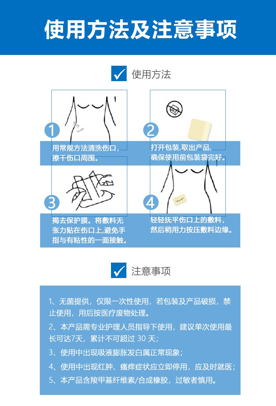 通過(guò)水溶性高分子顆粒吸收創(chuàng)面滲出液。用于非慢性創(chuàng)面的覆蓋和護(hù)理。