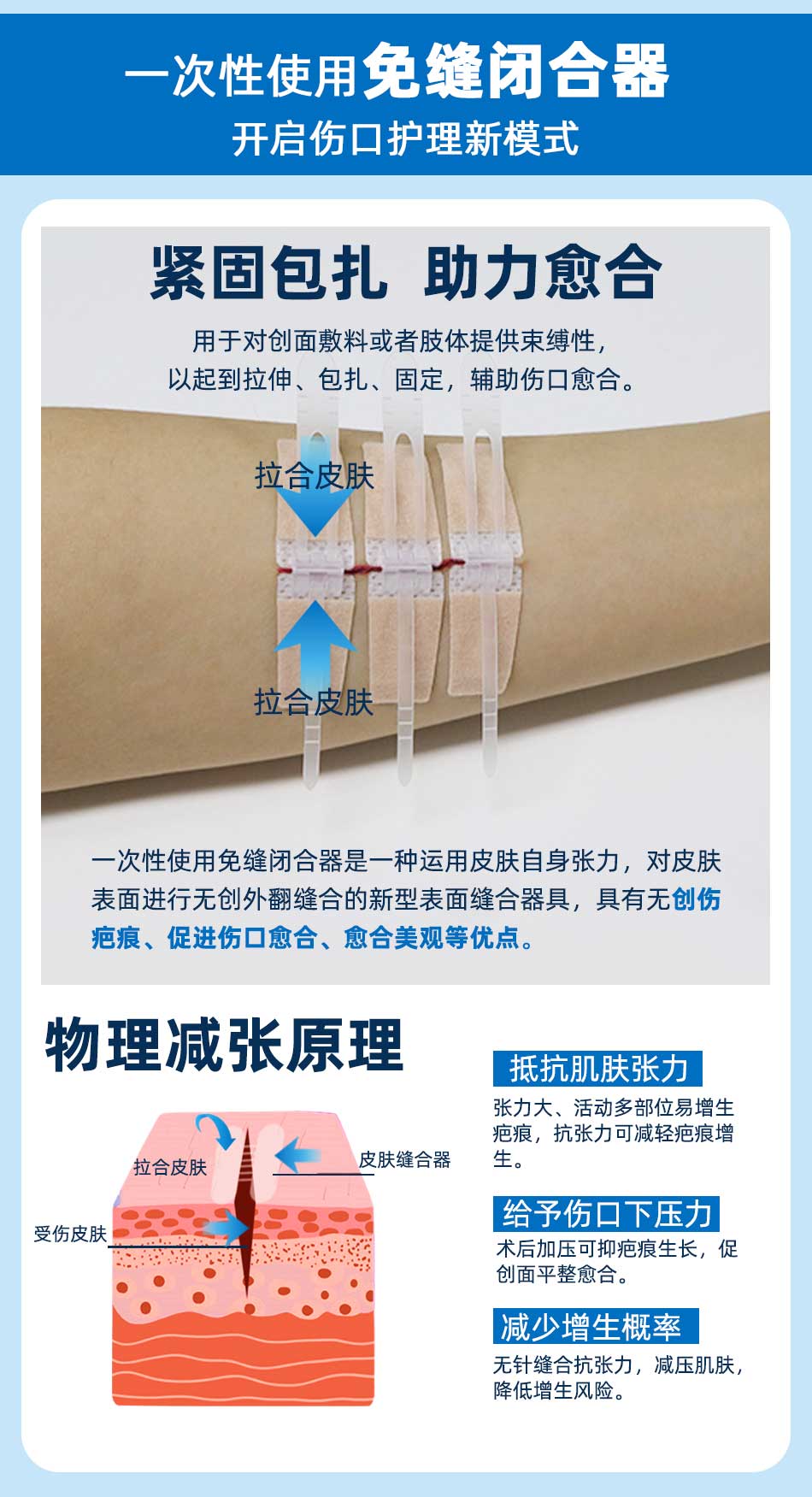 用于體表各部位傷口的閉合。