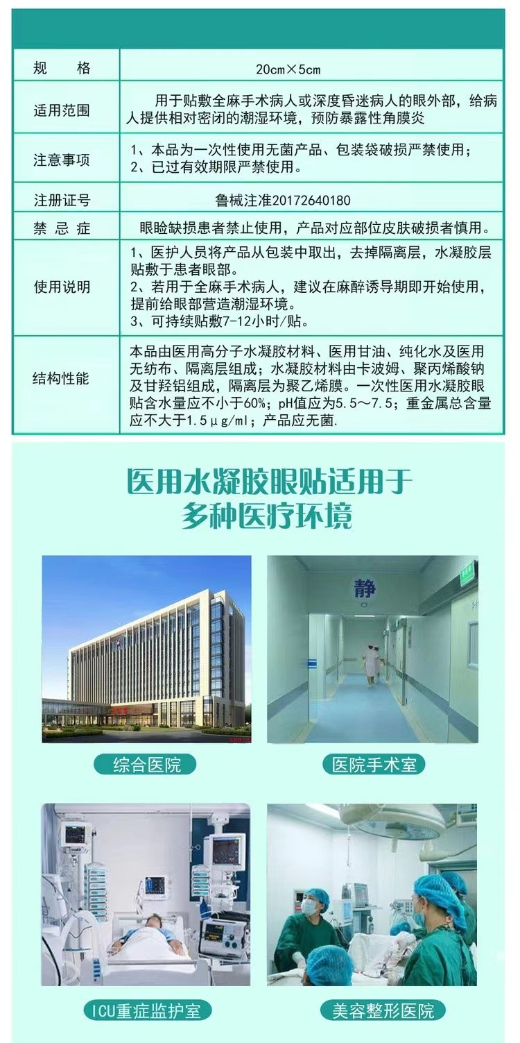 一次性醫(yī)用水凝膠眼貼二類械字號眼科耗材護(hù)眼貼產(chǎn)品說明: