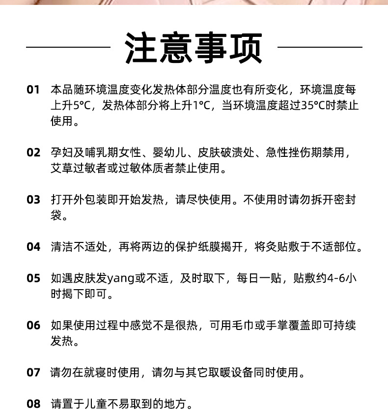 4、散貼后無熱感,如有過敏等不適,應(yīng)停止敷貼;