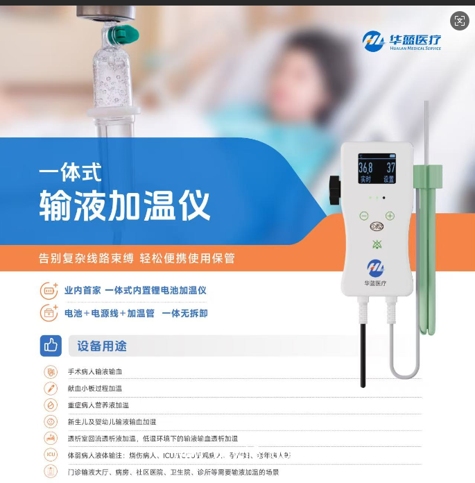 ?適用范圍:本產(chǎn)品臨床用于輸血、輸液過程中加溫輸注液體(鎮(zhèn)痛藥、化療藥物、胰島素除外),不與血液、藥液接觸。