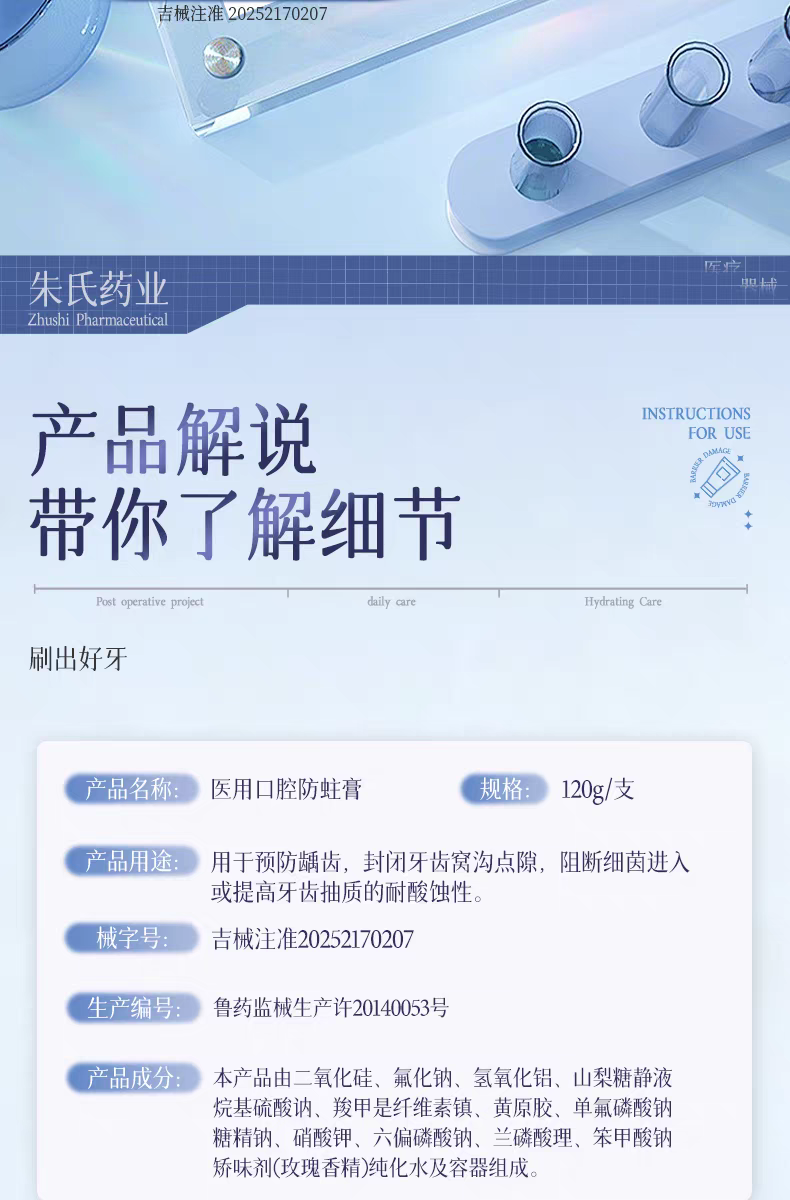 醫(yī)用口腔防蛀膏廠家 現(xiàn)貨批發(fā)二類(lèi)械字號(hào)院線同款可定制益生菌牙膏產(chǎn)品說(shuō)明: