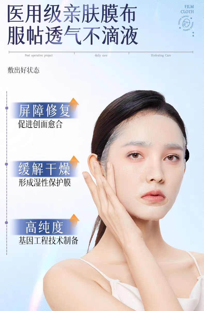 【適用范圍】通過(guò)在創(chuàng)面表面形成保護(hù)層,起物理屏障作用。用于小創(chuàng)口、擦傷、切割傷等非慢性創(chuàng)面及周圍皮膚的護(hù)理。