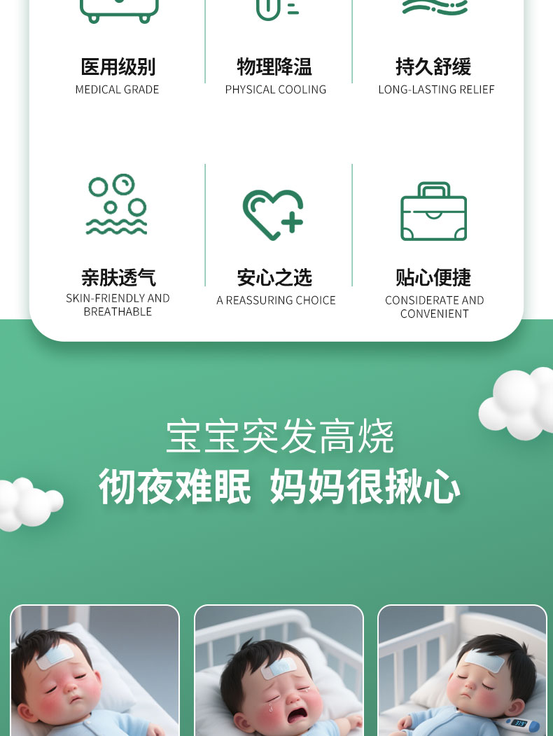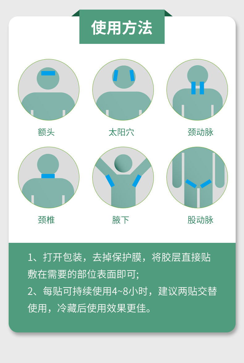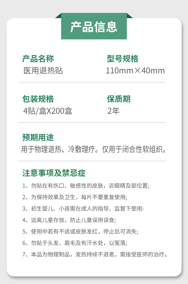 醫(yī)用退熱貼 110mm x40mm 源頭廠家規(guī)格齊全 械字號(hào)操作渠道廣產(chǎn)品說(shuō)明: