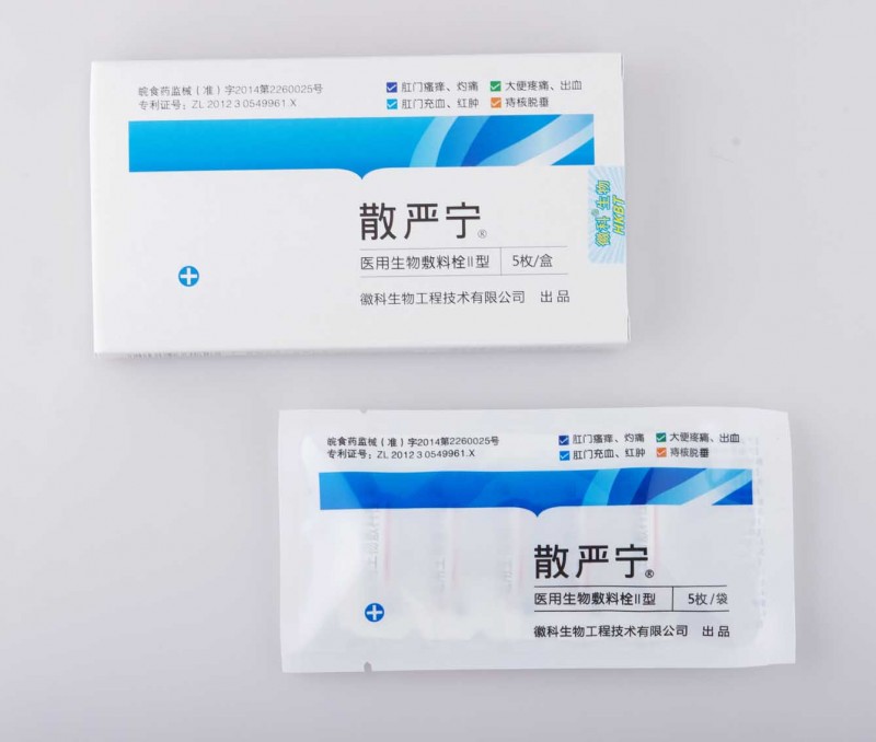 痔瘡栓劑—散嚴(yán)寧醫(yī)用生物敷料栓Ⅱ型產(chǎn)品說明: