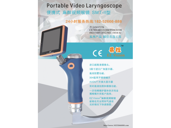 產(chǎn)品說明:可視頻喉鏡 SMT-II 是一款在醫(yī)療領(lǐng)域中具有重要作用的器械。它的工作原理是通過前端的攝像頭采集喉部的圖像,并將其實(shí)時傳輸?shù)斤@