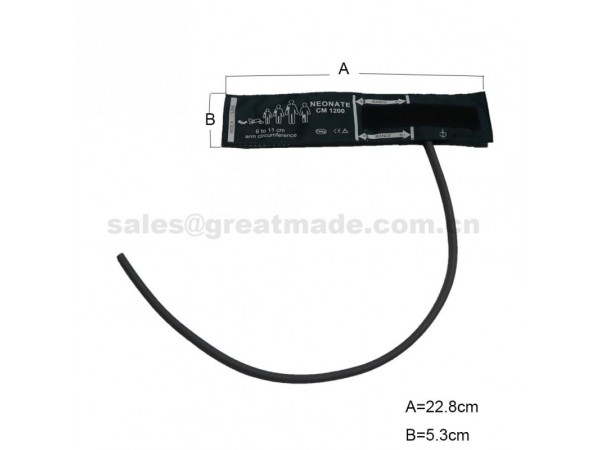 產(chǎn)品說明:尼龍新生兒單管血壓袖帶產(chǎn)品描述:1、可選型號:成人大腿/加大成人/成人/兒童/嬰兒/新生兒.2、尼龍袖帶面料.3、TPU氣囊無毒無味