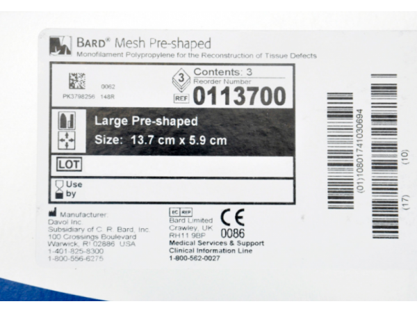 產(chǎn)品說明:品牌:美國巴德BARD型號:0112770結(jié)構(gòu)及組成該產(chǎn)品是采用單絲聚丙烯編織構(gòu)成的預(yù)成型三維立體結(jié)構(gòu)產(chǎn)品,外層呈凹槽狀,內(nèi)層呈多