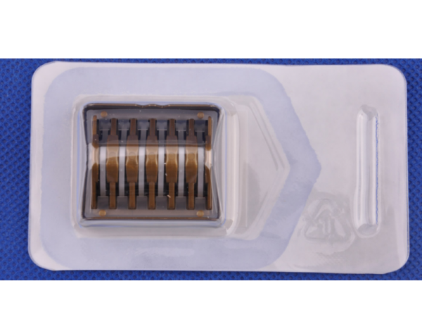 產品說明:1、對血管組織損壞微乎其微;*注:長時間夾閉會造成血管組織等壞死2、無切割作用;3、隆凸設計,不掉釘;4、扣鎖裝置,夾閉完全,不滑落;5、活頁、弓形釘腿,結扎范圍廣;6、可觸...