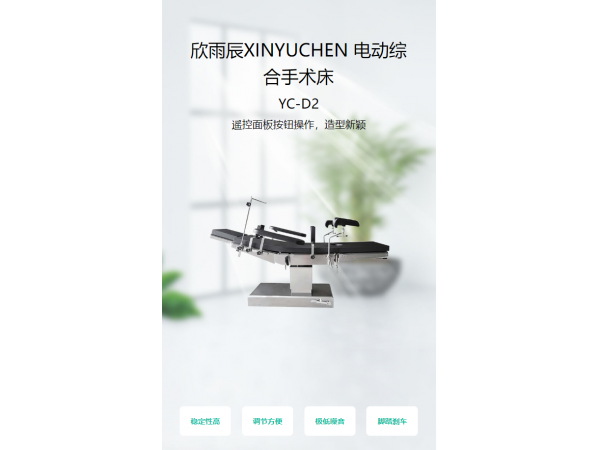 產(chǎn)品說明:■介紹YC-D2電動(dòng)手術(shù)臺(tái)普通型,可供醫(yī)院實(shí)行頭、頸、胸腹腔、會(huì)陰、四肢等外科、婦產(chǎn)科、五官科、腦外科手術(shù)。臺(tái)面可分為四段,